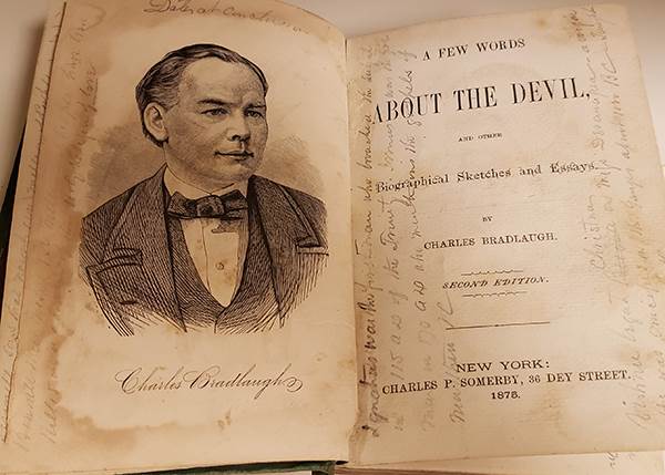 Runners will pass the Lincoln-Herndon Law Office building and remember stories they’ve heard about Lincoln and his law partner William Henry Herndon. During a library visit, researchers can view a collection of books Herndon personally owned. Most contain Herndon’s signature, but a few contain notes in the margins. An example of a book which contains extensive marginalia from Herndon is A Few Words about the Devil: and other biographical sketches and essays by Charles Bradlaugh. Search our card catalog to find all these and more.