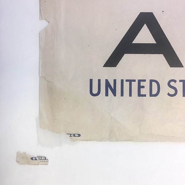 The Abraham Lincoln Presidential Library, formerly the Illinois State Historical Library, has a large and beautiful collection of posters, or broadsides, from World War I. In the Conservation Lab I have worked on dozens of them and always admire the artwork and the brilliance of the colors some 100 years later. Recently I organized a collection of missing fragments from our collection of these broadsides, thinking I might someday reunite a piece with its original artwork.