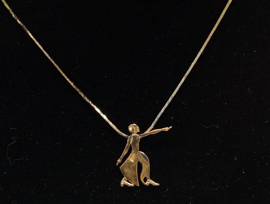 This necklace was created in the form of the “Fortitude” sculpture on Howard University’s campus that was commissioned by Delta Sigma Theta Sorority, Inc. to honor its founders. (Courtesy of Delta Sigma Theta Sorority, Inc. Springfield-Decatur Area Alumnae Chapter)