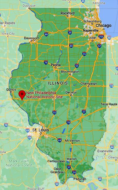 The location of New Philadelphia, in west-central Illinois. (Google Maps)