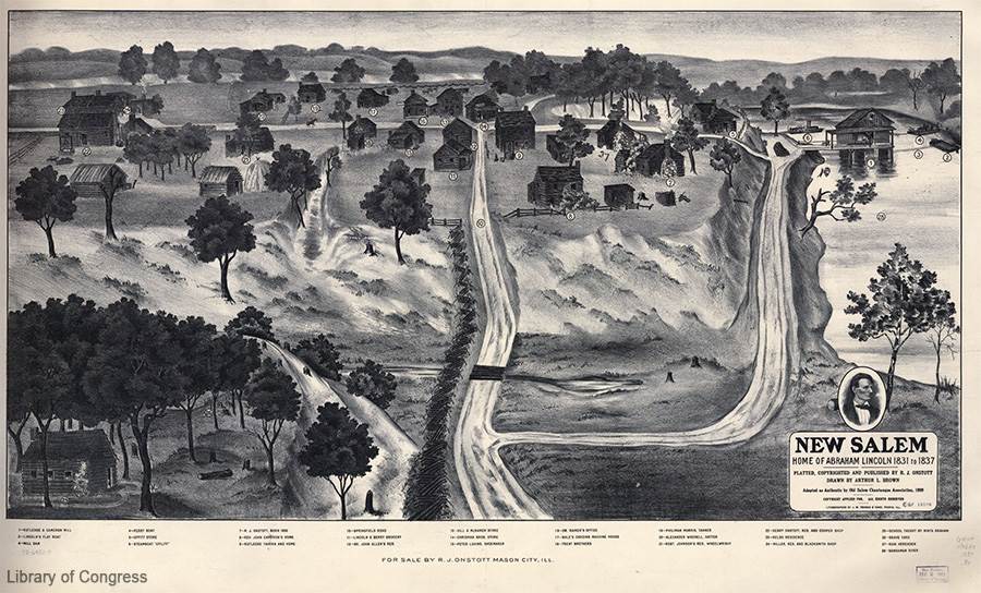 A map of the tiny, and short-lived, village of New Salem (Library of Congress)