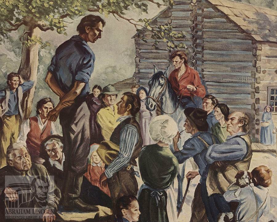 An artist's conception of the new candidate talking to the people of New Salem (ALPLM)