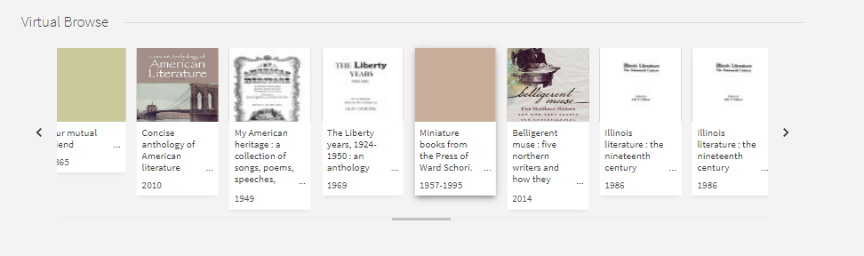 Another new feature on Primo is “Virtual Browse.” This allows you to see the resources we have which are most like the one you have chosen. These books are neighbors on our shelves and have similar call numbers. Consider it a way to walk through our stacks from the comfort of your own home.