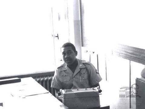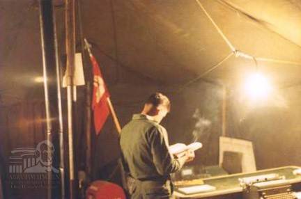 Specialist Bowen working as the company clerk for Company E, 10th Engineer Battalion, 3rd Infantry Division.