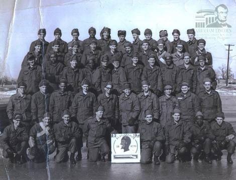 Bowen’s Basic Training Platoon assembles for a group photo. Bowen is in the third row, second from the left.