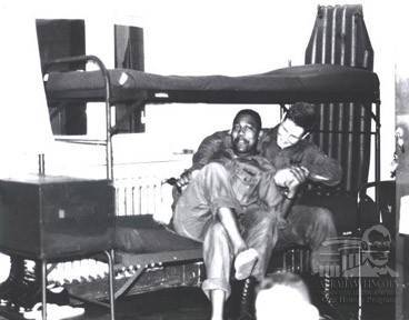 Bowen and buddy Private Morrow of Chicago unwind at the end of the day.