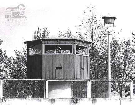 Bowen took this photo of some East German guards keeping a vigilant eye on the Berlin Wall, looking east into the Soviet sector.