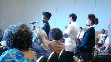 A student from a Washington, D.C. area middle school asks Harriet Tubman a question at Kathryn Harris’s presentation during the Congressional Black Caucus’s Annual Legislative Conference on September 20, 2012 in Washington, D.C.