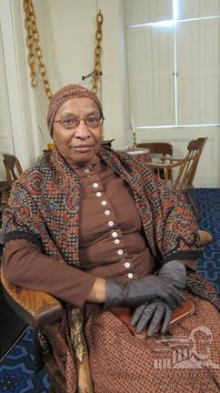 Kathryn Harris dressed as Harriet Tubman, for her oral history interview on January 10, 2013. She was interviewed in the Governor’s Reception Room of the historic Old State Capitol in Springfield, Illinois.