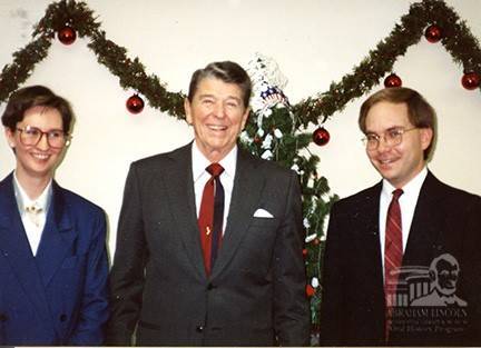 In 1989 Kathy and Alan joined President Reagan in celebrating Christmas while he worked at the Reagan Project (the building where Reagan artifacts and documents were sent prior to the construction of the Library) in Los Angeles.