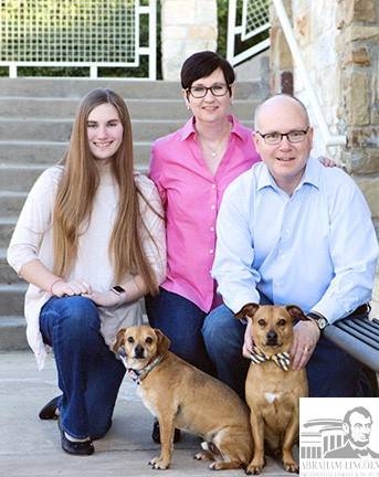 This photo of the Lowe family, (Carolyn, Kathy and Alan with the family dogs, Rex and Lincoln) was taken at the Castle Hills Community Center for “Castle Hills Magazine” in 2016, shortly before Alan made the decision to head north to Springfield, IL.