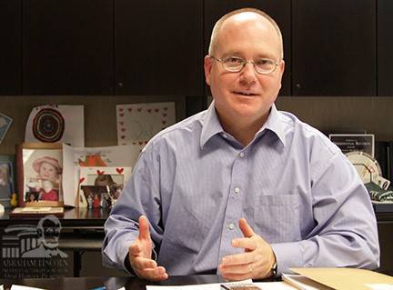 Alan makes a point while at his desk in the Lewisville, Texas office in 2010. This was prior to the completion of President Bush’s new Library and Museum.