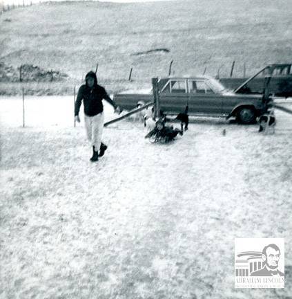 Alan’s father, Roy Allen Lowe, pulls him on his sled on the front lawn of their farmhouse near Millersburg, Kentucky, circa 1969.