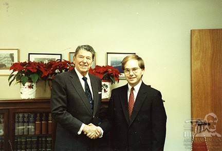 President Ronald Reagan and Alan share a moment during Alan’s first year as an archivist for the Reagan Presidential Library in 1989. Alan counted himself as fortunate to start his working career at the Reagan Library.