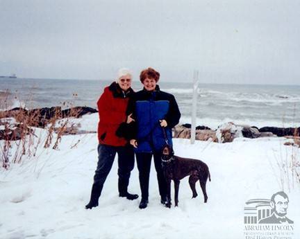 Ann Isenbery (Mary Lee’s spouse) and Mary Lee with their dog Molly in Portsmouth, New Hampshire circa 2004.