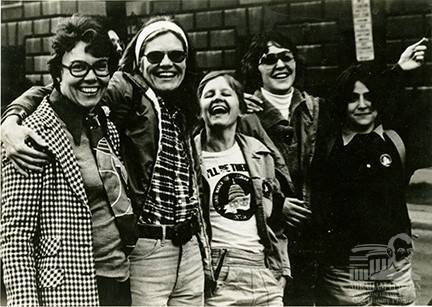 Mary Lee participated in a march in Washington, D.C. for gay and lesbian rights in 1979, the first such march for the cause. From left to right are Cathy Zhart, Mary Lee Sargent, Kari Alice Lynn, Jon Smith and Linda Aldana Nall.