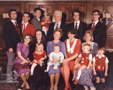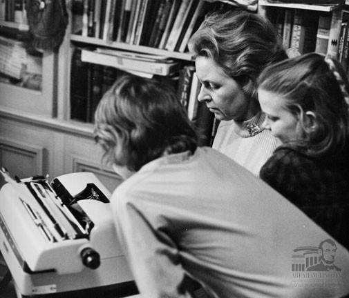 Mrs. Schlafly shares a moment with her children Andy and Anne in the family study, circa 1975. She took a keen interest in their education, and personally taught all six of her children to read.