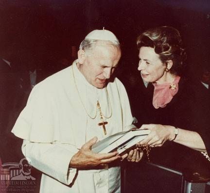 Phyllis Schlafly presented Pope John Paul II with her book, The Power of the Positive Woman, at the Vatican in 1981.
