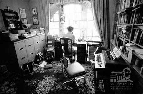 Phyllis Schlafly at work in her Alton home office circa 1980.