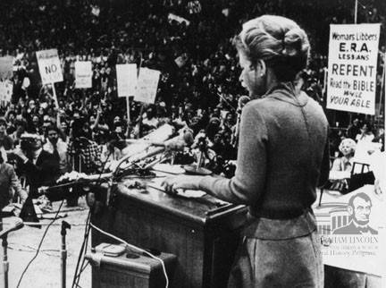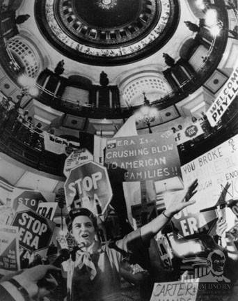 Phyllis Schlafly rallies her troops in the rotunda of the Illinois State Capitol in June of 1978. Schlafly counted her victory that year as one of the most important milestones in the long campaign against ERA.