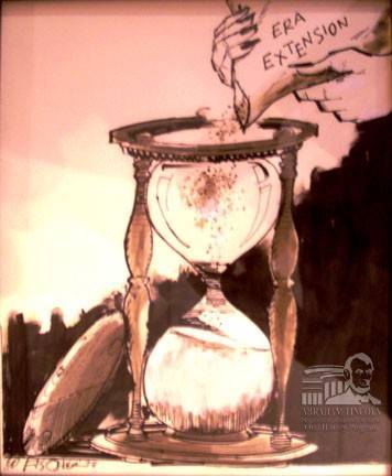 A 1978 political cartoon penned by Bob Englehart which addressed the questionable decision by Congress to extend the time needed by the states to ratify ERA. Schlafly and the Stop ERA forces asserted this to be unconstitutional.