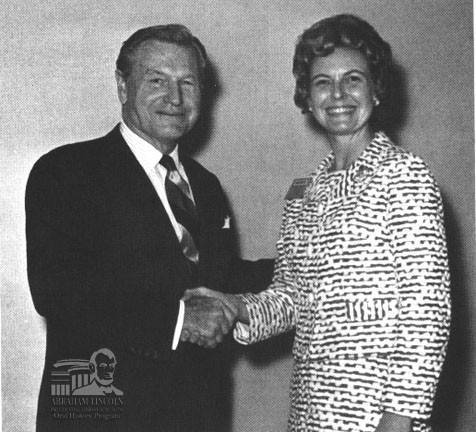 In 1967 Mrs. Schlafly ran for the presidency of the National Federation of Republican Women. With her is Maureen Reagan (daughter of Ronald Reagan and Jane Wyman). She lost in a brutal battle to a woman favored by the moderates in the party.
