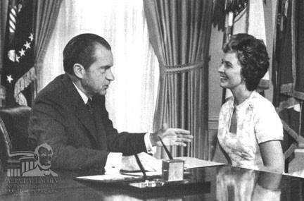 Phyllis Schlafly meets with President Richard Nixon in the Oval Office in 1970. She became disillusioned with the moderate Nixon once he was in office.