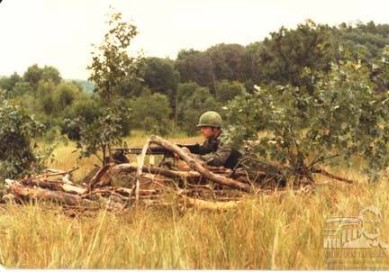 Paul W. Sweet sets up along the defensive perimeter at the Tempelhof Airport (German: Flughafen Berlin-Tempelhof) in Berlin, Germany, in April 1989 while the 183rd Fighter Wing, an Illinois Air National Guard unit, was on deployment.