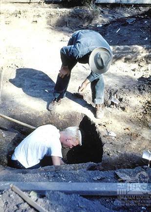 Richard Hagen, in the pit, supervised an archaeological dig at the Lincoln Home site circa 1953.