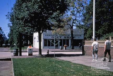 This gift shop formerly stood across the street from the Lincoln Home in the 1950s.That area is now a vacant lot.