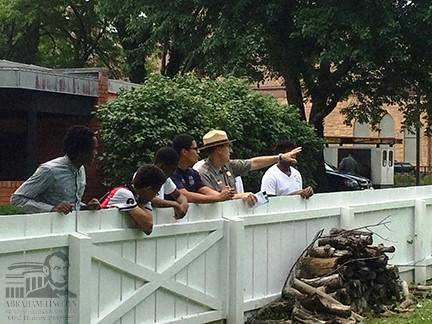 Tim Townsend shows a group of students from the Spirit of Lincoln Youth Leadership Academy, an employment training program for interns, around the Lincoln Home site in 2015.