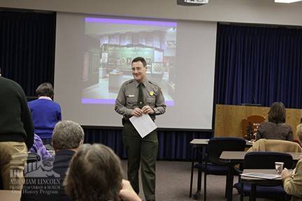 Tim Townsend is leading a teacher workshop at the Lincoln Home National Historic Site in 2009.