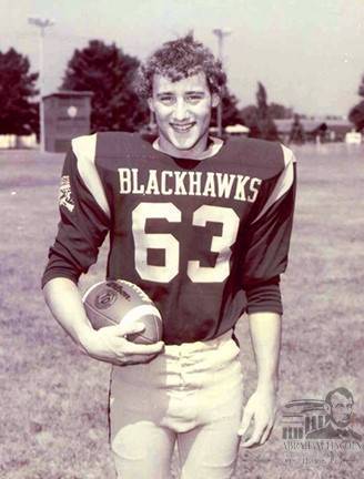 Tim Townsend played on his high school football team, the Stockton High School Blackhawks, in 1983.